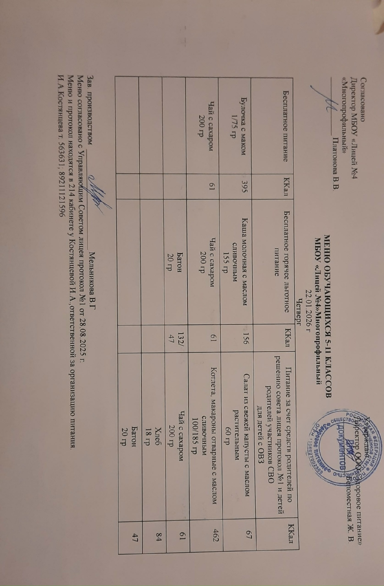 ОРГАНИЗАЦИЯ ПИТАНИЯ В ЛИЦЕЕ В 2025-2026 УЧЕБНОМ ГОДУ
